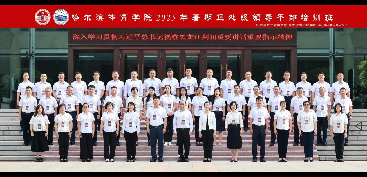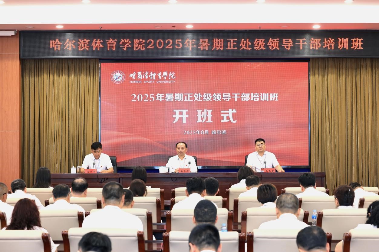 在教育强国建设的时代背景下,为深入落实党的二十届三中全会精神,响应《教育强国建设规划纲要(2024 - 2035)》,8月25-27日,哈尔滨体育学院2025年暑期正处级领导干部培训班在省委党校(省行政学院)成功举办。哈尔滨体育学院党委书记、院长姜玉洪出席开班式并做专题辅导。开班式前,常务副校(院)长周英东、副校(院)长阎喜凤与哈尔滨体育学院班子成员就培训事宜进行会谈交流。哈尔滨体育学院所有院领导及正处级领导干部共49人参加培训。