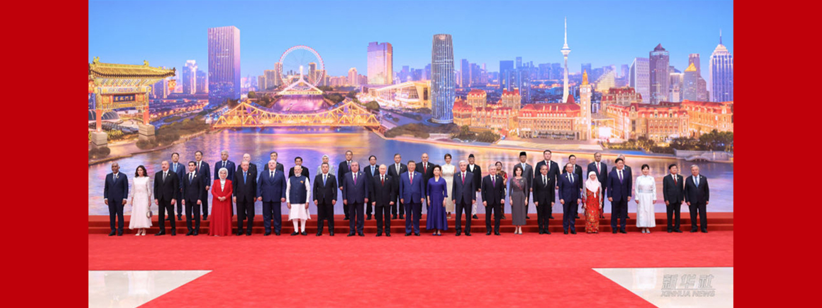 习近平和彭丽媛为出席2025年上海合作组织峰会的国际贵宾举行欢迎宴会